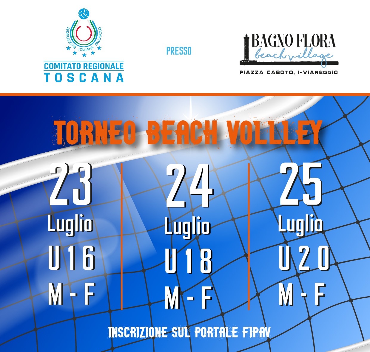 Il Comitato Regionale Toscano organizza tre tornei Under 16-18-20 nelle giornate 23-24-25 luglio presso il Bagno Flora Viareggio !
